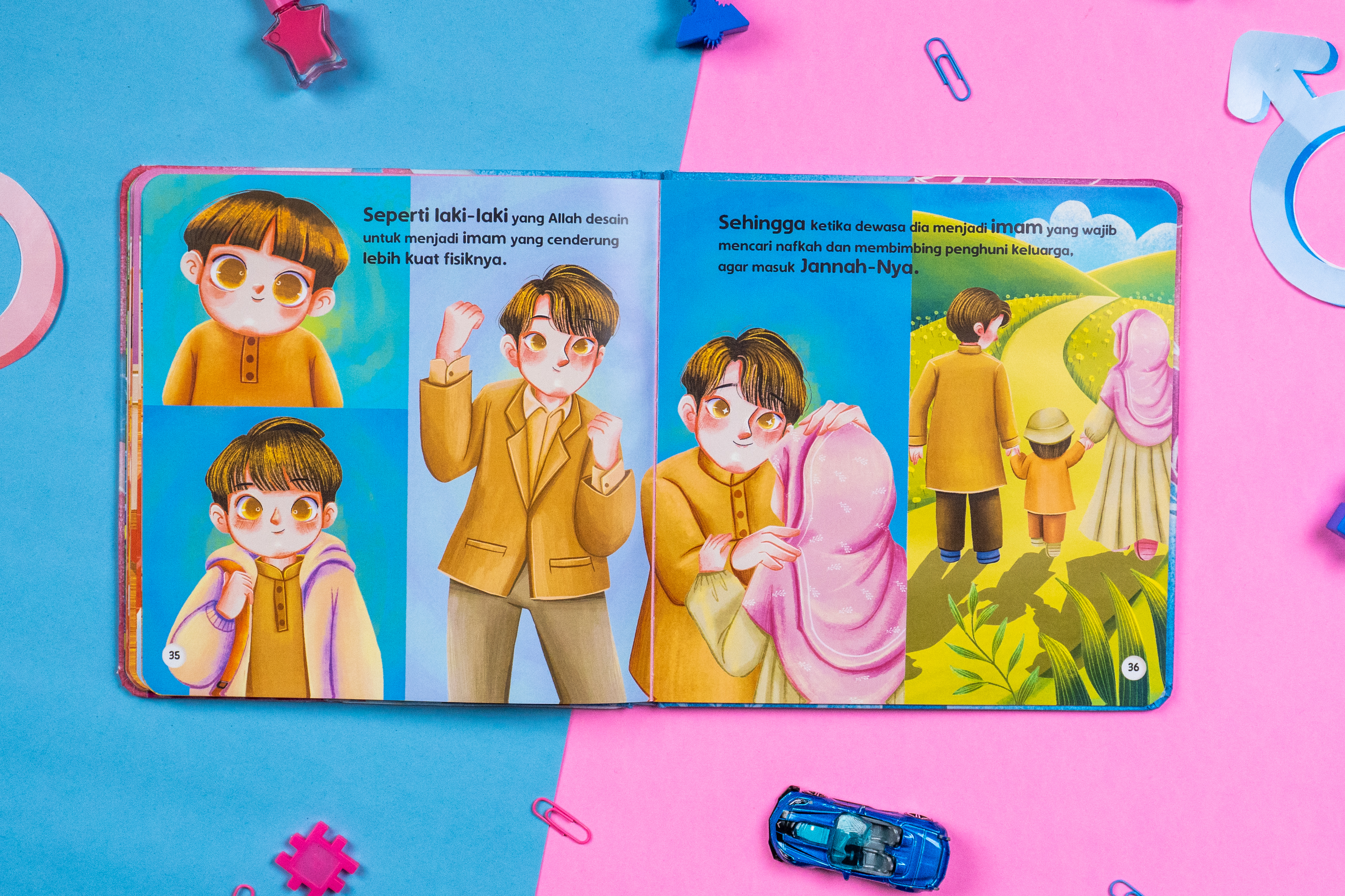 Tokoh tanpa nama sebagai AKU, akan membuat anak diajak sebagai PEMERAN UTAMA dalam setiap perjalanan mencari jawaban tentang Kenapa Laki-laki dan Perempuan Berbeda.